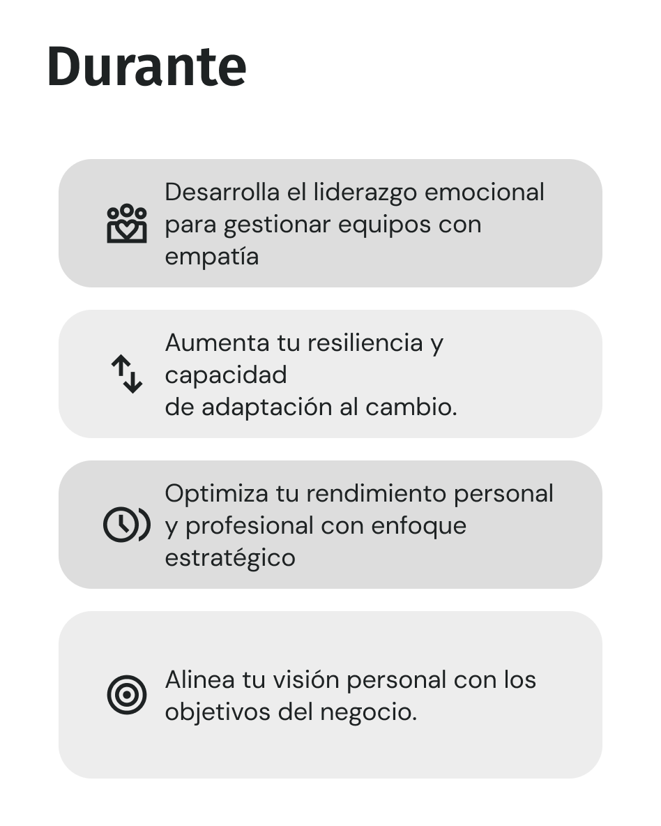 Este programa no solo busca que lideres mejor, sino que te reconozcas como una persona más consciente, segura y coherente en cada decisión que tomas en tu vida y en tu organización.