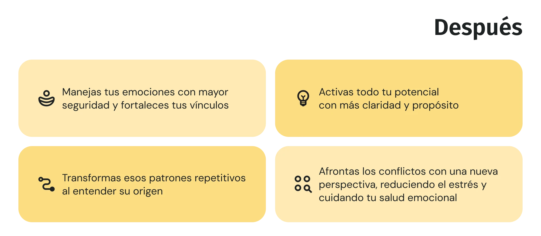 De esta forma, aseguramos que alcances tus metas de bienestar emocional, mental y productividad.